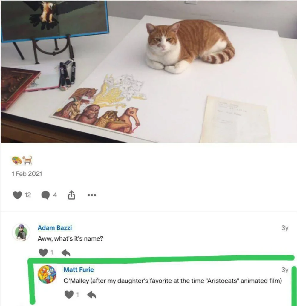 O’Malley is the beloved pet cat of Matt Furie, the creator